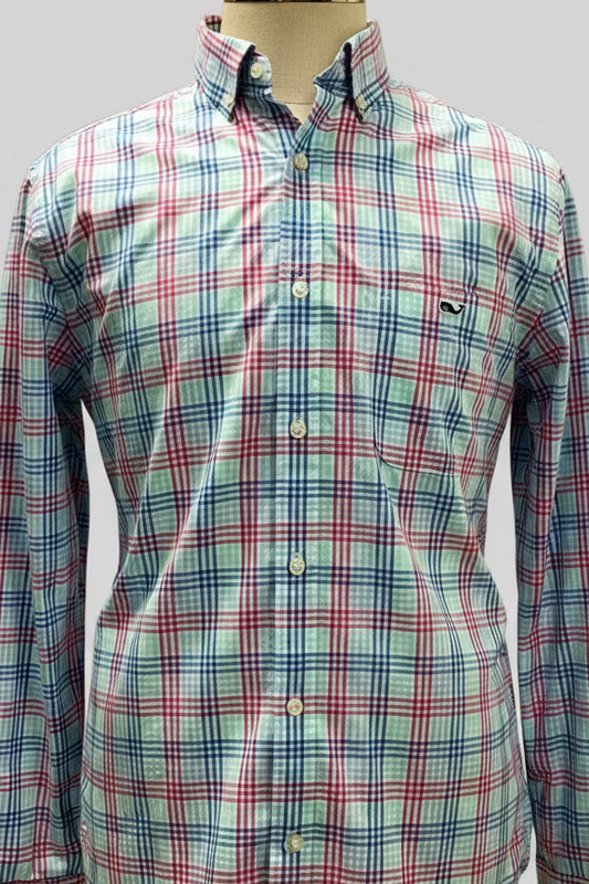 Camisa Vineyard Vines 🐳 Color blanco de cuadros en color rosado, azul y celeste Talla M Entalle Clásico