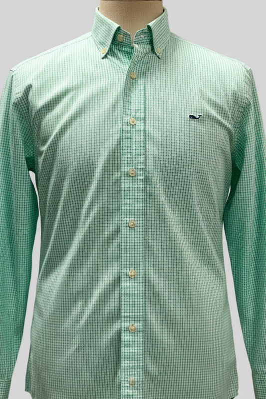 Camisa Vineyard Vines 🐳 Color blanco de cuadros en color turquesa Talla M Entalle Clásico