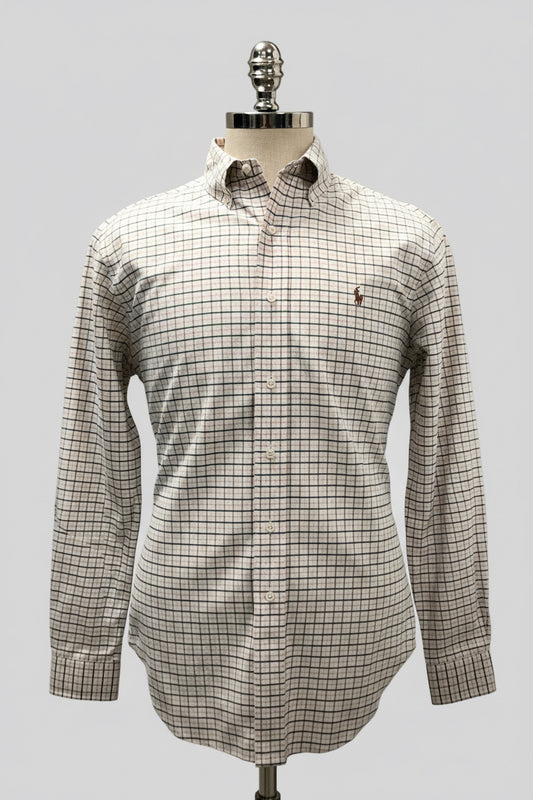Camisa Polo Ralph Lauren 🏇🏼 Oxford color blanco de cuadros en rosado y negro Talla M Entalle Clásico (ver descripción)