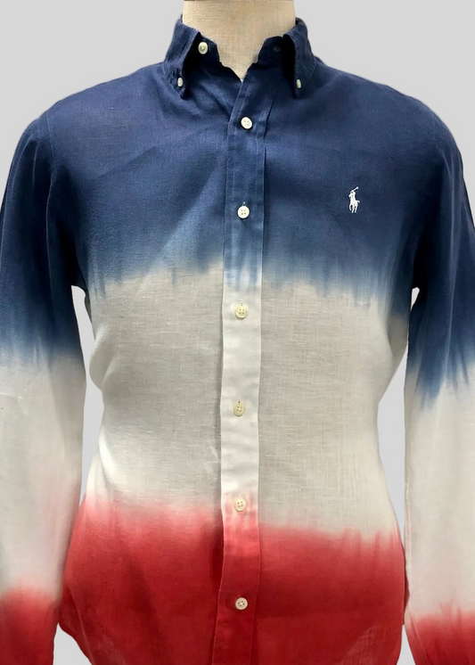 Camisa de botones Polo Ralph Lauren 🏇🏼 De Lino con diseño degradado en color azul, blanco y rojo Talla S Entalle Regular