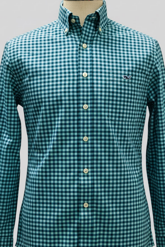 Camisa de botones Vineyard Vines 🐳 Performance de cuadros gingham en color azul y turquesa Talla M Entalle Slim Fit