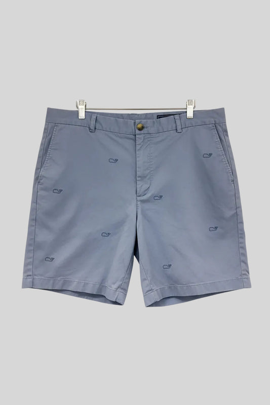 Short Casual Vineyard Vines 🐳 color gris azulado con diseño de logos talla 38