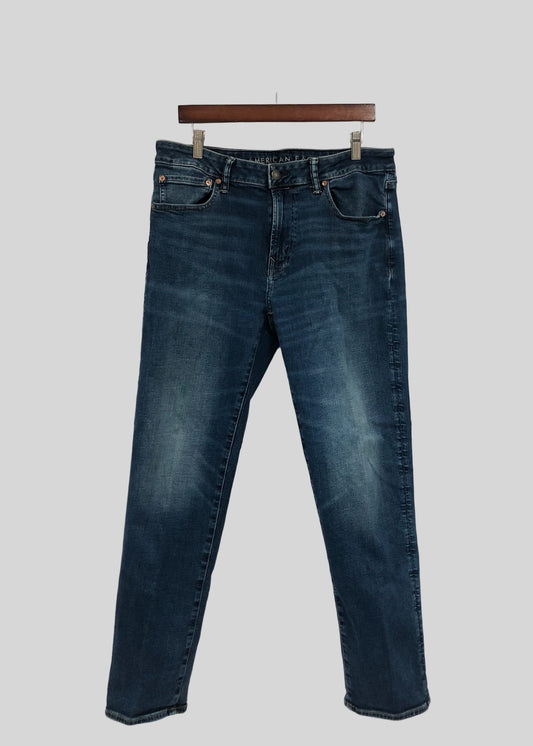 Pantalon jeans American Eagle 🦅 color azul Talla 34x34 Corte Straight Fit