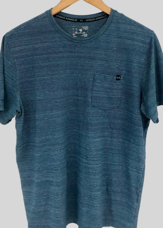 Camiseta cuello redondo Under Armour 🏋🏽 de rayas finas color azul y blanco manga corta Talla M