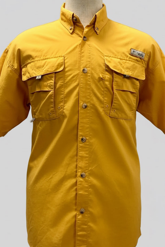 Camisa de botones Columbia 🔹color naranja con Omni Shade Manga corta Talla M