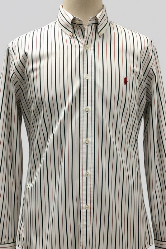 Camisa Polo Ralph Lauren 🏇🏼 Color blanco de rayas en color rojo y negro Talla XL Entalle Clásico