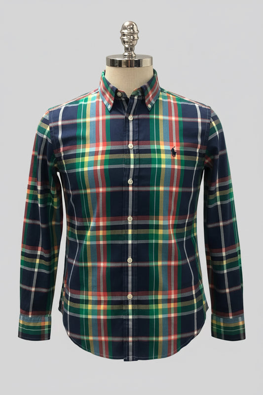 Camisa de niño Polo Ralph Lauren 🏇🏼 de cuadros en verde, naranja, amarillo y azul Talla L (14-16) Entalle Regular