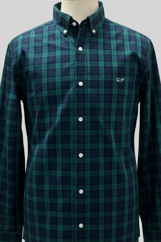 Camisa de botones Vineyard Vines 🐳 de cuadros tartán en color verde oscuro y azul navy Talla L Entalle Clasico