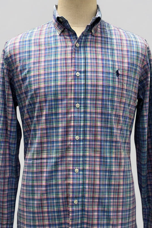 Camisa de botones Polo Ralph Lauren 🏇🏼 de cuadros azul, rosado y blanco Talla L Entalle Regular