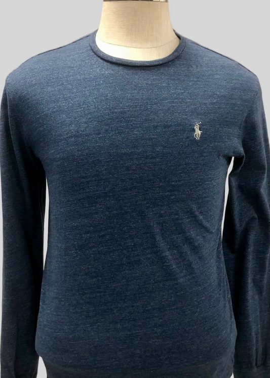 Camiseta cuello redondo Polo Ralph Lauren 🏇🏼 color azul grisáceo manga larga Talla S Entalle Regular