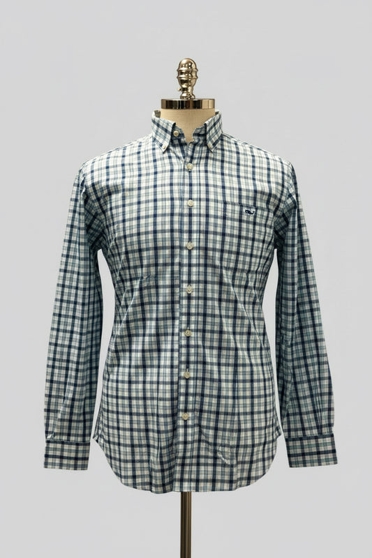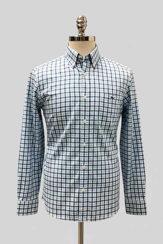 Camisa Vineyard Vines 🐳 Color blanco de cuadros en color azul navy y celeste Talla M Entalle Clásico