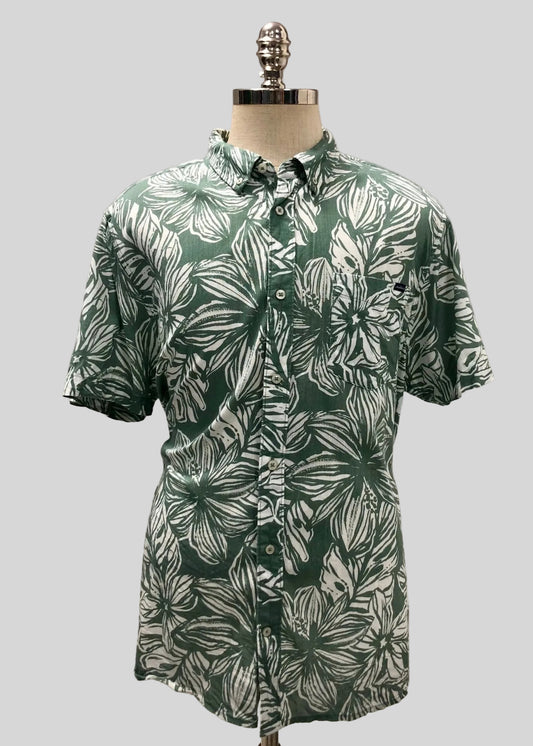 Camisa de botones Chubbies 🌴 Color verde con diseño floral en blanco Talla XL Entalle Regular