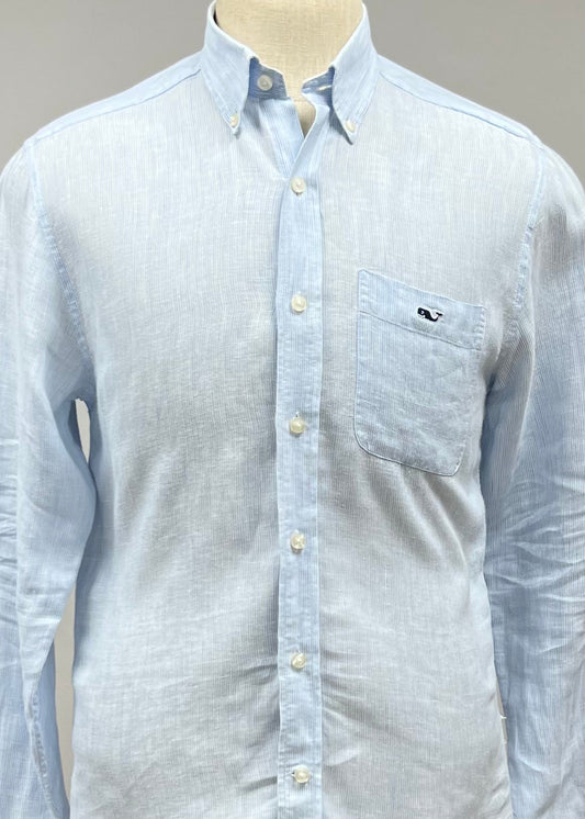 Camisa de botones Vineyard Vines 🐳 De lino con patrón de rayas en color celeste y blanco Talla M Entalle Clásico