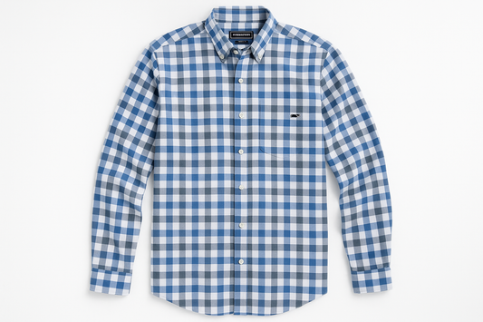 Camisa de botones Vineyard Vines 🐳 con patrón de cuadros gingham en color azul y celeste Talla S Entalle Slim Fit