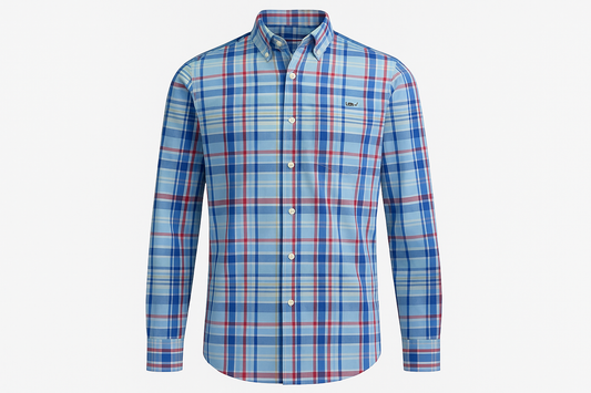 Camisa de botones Vineyard Vines 🐳 color celeste de cuadros en color rojo, azul y amarillo Talla S Entalle Slim Fit