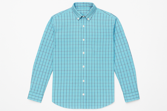 Camisa Lacoste 🐊 color celeste con patrón de cuadros en Azul Talla S Entalle Regular