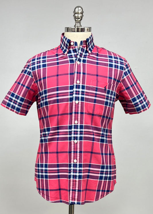 Camisa Polo Ralph Lauren 🏇🏼 color rosado magenta de cuadros tartán en color azul y blanco Talla S Entalle Regular