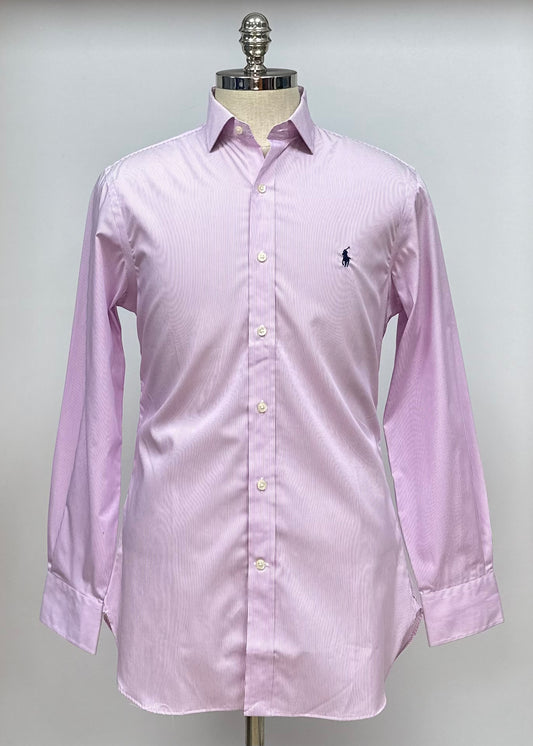 Camisa Polo Ralph Lauren 🏇🏼 color blanco con patron de rayas finas en color rosado Talla S Entalle Clásico