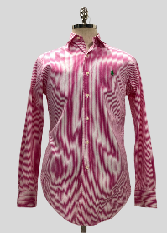 Camisa Polo Ralph Lauren 🏇🏼 color blanco con rayas en color rosado oscuro Talla S Entalle Regular