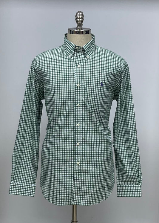 Camisa Polo Ralph Lauren 🏇🏼 con patron de cuadro verde, azul y blanco Talla S Entalle Custom Fit