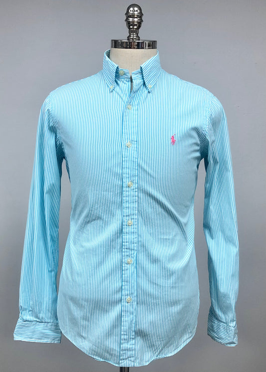 Camisa Polo Ralph Lauren 🏇🏼 color Blanco con patron de rayas en celeste y azul Talla S Entalle Regular
