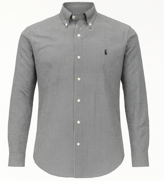 Camisa Polo Ralph Lauren 🏇🏼 con patron de cuadros finos negro y blanco Talla S Entalle Slim Fit