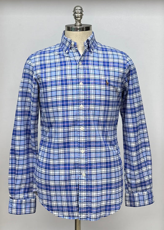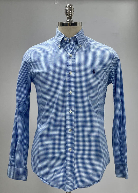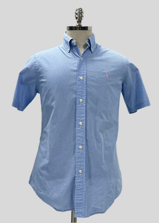 Camisa Polo Ralph Lauren 🏇🏼 con patron de cuadros en azul, celeste y blanco Talla S Entalle Regular