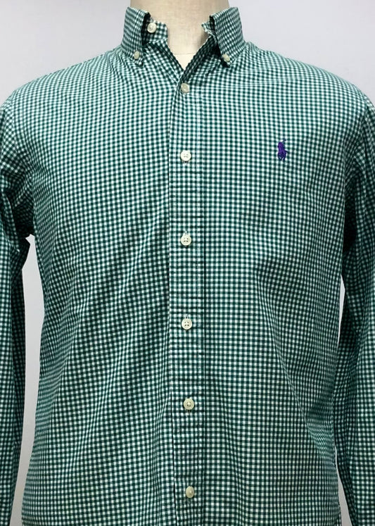 Camisa Polo Ralph Lauren 🏇🏼 con patron de cuadros gingham verde y blanco Talla S Entalle Clásico