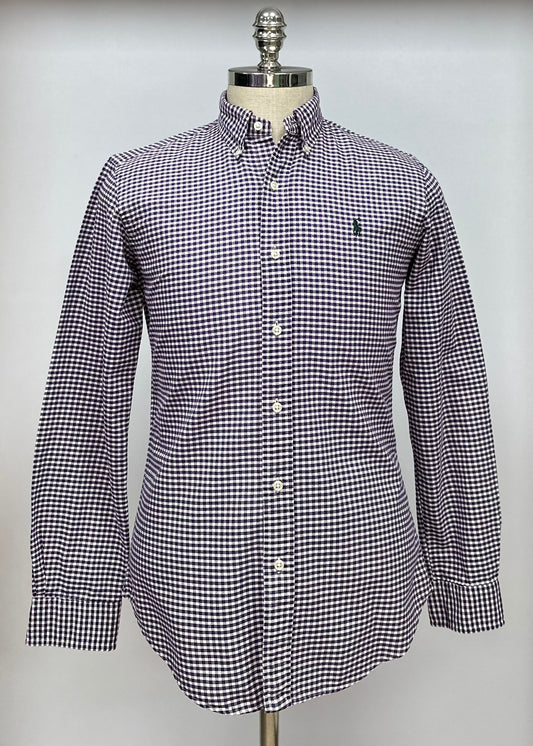 Camisa Polo Ralph Lauren 🏇🏼 con patron de cuadros gingham morado y blanco Talla S Entalle Custom Fit