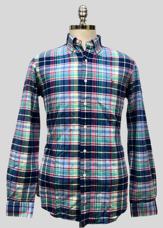 Camisa Polo Ralph Lauren 🏇🏼 con patron de cuadros rojo, azul, amarillo y blanco Talla S Entalle Custom Fit