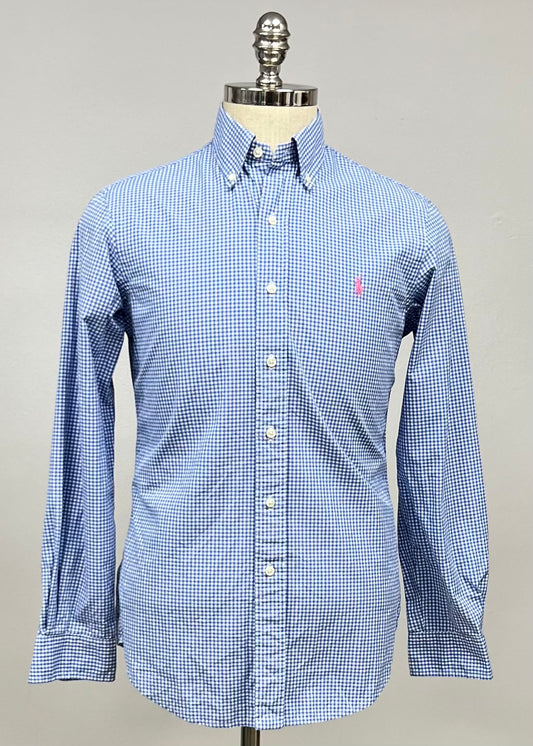 Camisa Polo Ralph Lauren 🏇🏼 con patrón de cuadros finos en celeste y blanco Talla S Entalle Regular