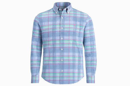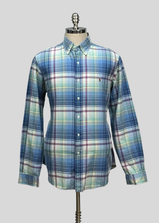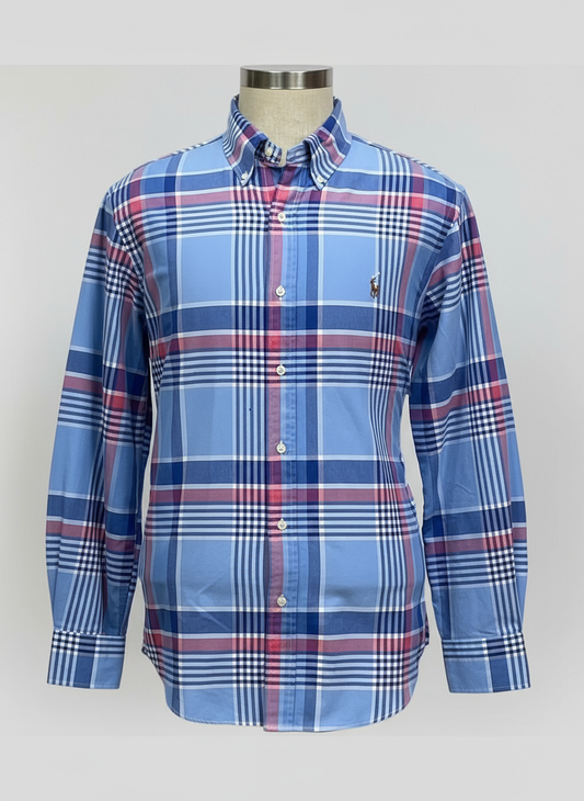 Camisa Polo Ralph Lauren 🏇🏼 Oxford con patron de cuadros tartán en color celeste, azul y rosado Talla S Entalle Regular