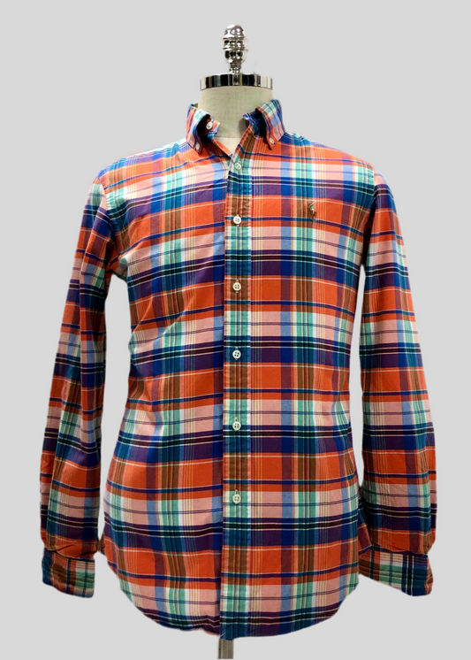 Camisa Polo Ralph Lauren 🏇🏼 Oxford con patrón de cuadros naranja, azul y blanco Talla S Entalle Regular