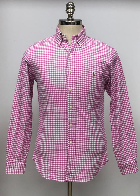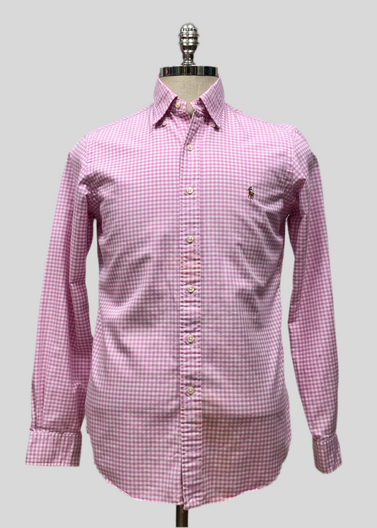 Camisa Polo Ralph Lauren 🏇🏼 Oxford con patron de cuadros gingham rosado y blanco Talla S Entalle Slim Fit
