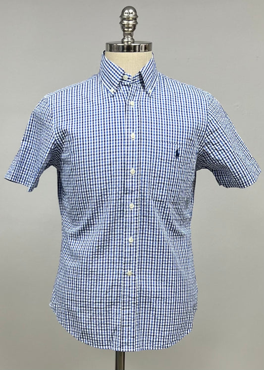 Camisa Polo Ralph Lauren 🏇🏼 Seersucker con patrón de cuadros en azul, celeste y blanco Talla S Entalle Regular