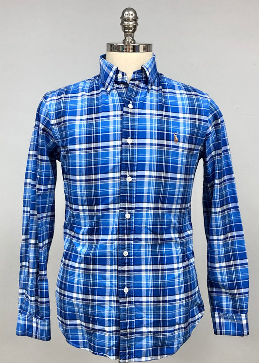 Camisa Polo Ralph Lauren 🏇🏼 Oxford con patron de cuadros tartán azul, celeste y blanco Talla S Entalle Regular