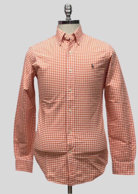 Camisa Polo Ralph Lauren 🏇🏼 Oxford de cuadros gingham naranja y blanco Talla S Entalle Slim Fit