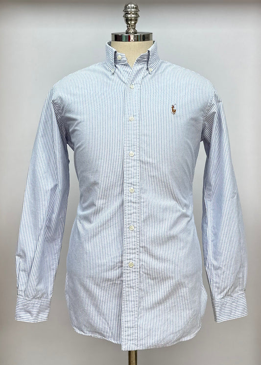 Camisa Polo Ralph Lauren 🏇🏼 Oxford color blanco con rayas en color celeste Talla S Entalle Clásico