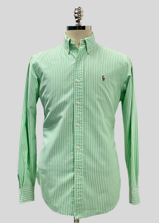 Camisa Polo Ralph Lauren 🏇🏼 Oxford color blanco con rayas en color verde claro Talla S Entalle Clásico