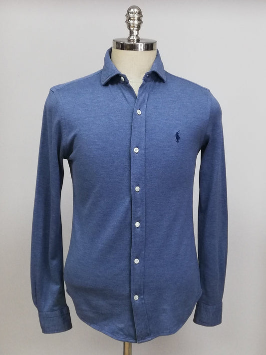 Camisa Polo Ralph Lauren 🏇🏼 Tela camiseta (Knit Oxford) en color azul grisáceo Talla S Entalle Regular