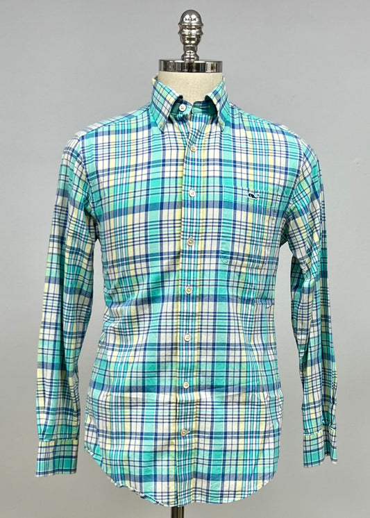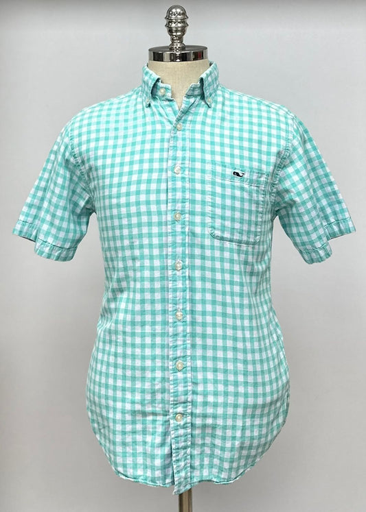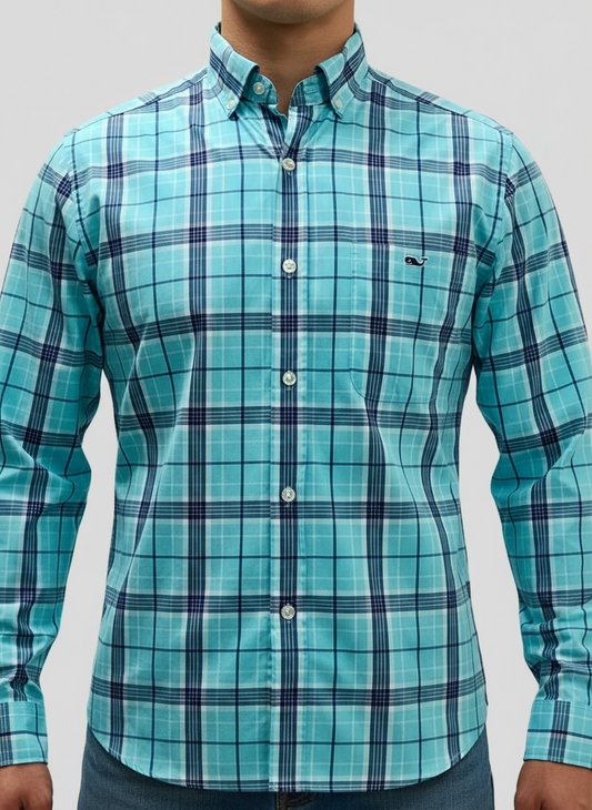 Camisa Vineyard Vines 🐳 con patrón de cuadros en color turquesa y blanco Talla S Entalle Clásico