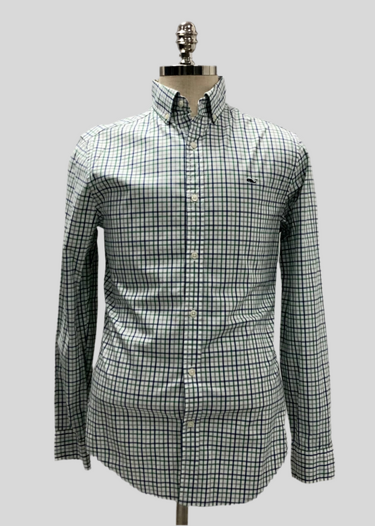 Camisa Vineyard Vines 🐳 color blanco con cuadros en color gris, verde y azul Talla S entalle clásico
