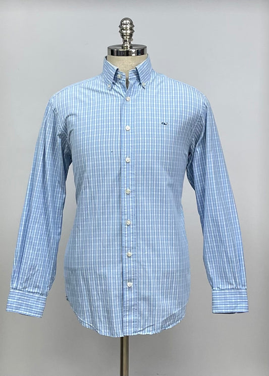 Camisa Vineyard Vines 🐳 con patron de cuadros en color celeste, azul navy y blanco Talla S Entalle Clásico