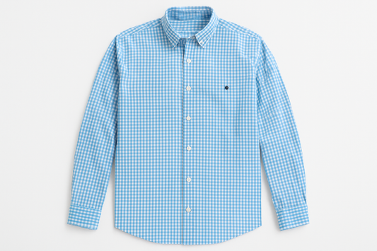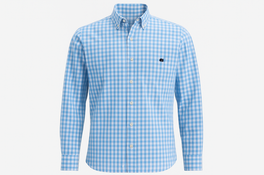 Camisa Vineyard Vines 🐳 con patron cuadros gingham en color celeste y blanco Talla S Entalle Regular