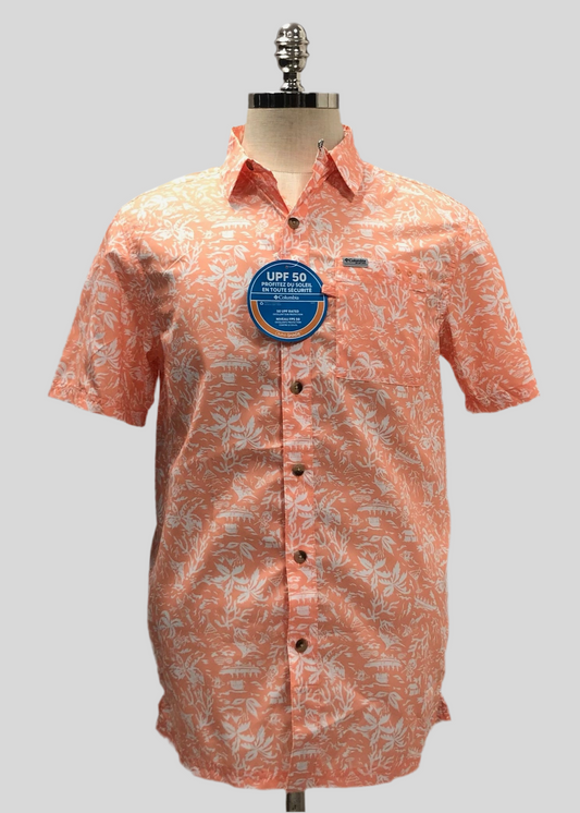 Camisa Columbia 🔹Color salmón con diseño hawaiano en color blanco Manga corta Talla S