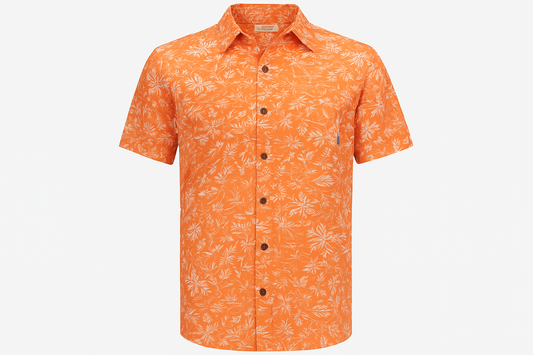 Camisa Columbia 🔹Color naranja con diseño hawaiano en color blanco Manga corta Talla S