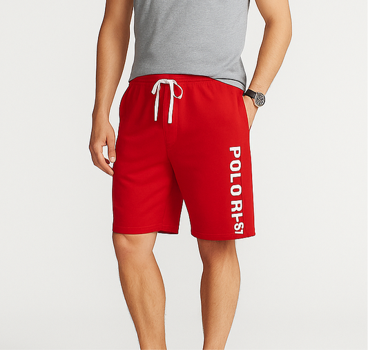 Short Lounge Polo Ralph Lauren 🏇🏼 color rojo con diseño RL-67 en blanco Talla S