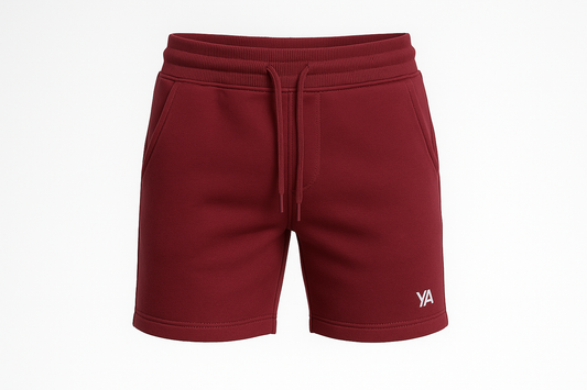 Shorts de gimnasio 🏋️♀️ YoungLA color rojo oscuro y logo en color blanco Talla S Entalle Slim Fit
