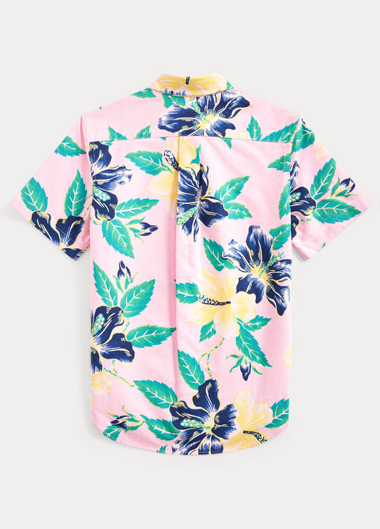 Camisa de botones Polo Ralph Lauren 🏇🏼 Oxford color rosado con diseño floral en azul y amarillo Talla S Entalle Clásico