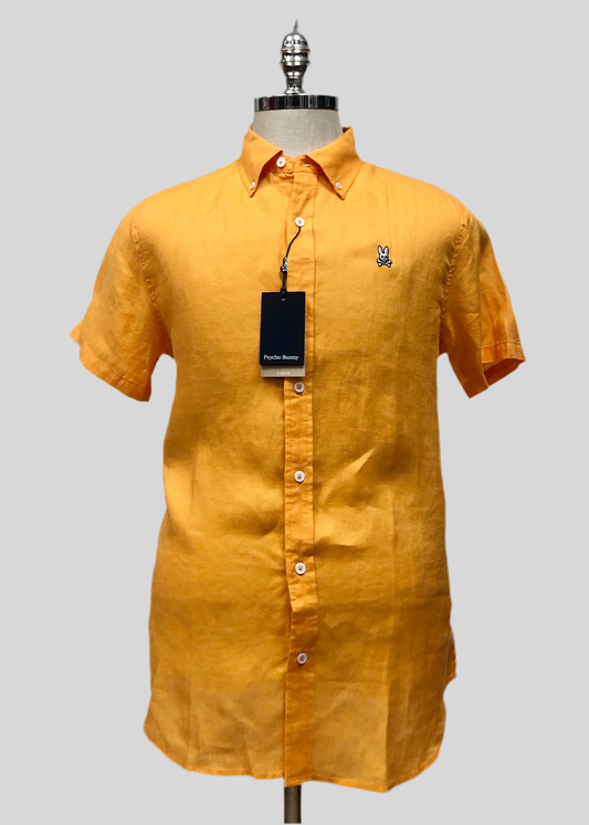 Camisa de botones Psycho Bunny 🐰 Tela de lino color naranja intenso Talla S Entalle Regular